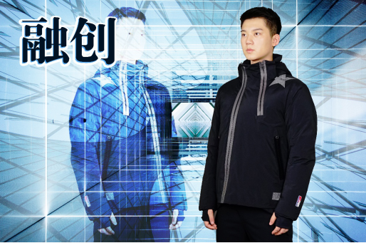 “融創”主題強調的是職業服的科技化和智能化。隨著90后逐步成為職場主力,年輕的職場人士都樂于擁抱科技帶來的改變,智能和科技逐漸改變了人們的工作方式和生活方式,未來職業服也相應的發生變化,呈現出來的是科技感、能量感、未來感、動感的特征。這一主題的色彩由兩組帶有強烈對比的色彩組合而成,硬朗沉穩的色調中點綴鮮艷奇幻的色彩,營造出活躍的氣氛,體現了科技與傳統的激烈碰撞。智能可穿戴技術應用將從舒適、便利、時尚等多個層面推進職業服的科技化發展。這一主題主推實用的功能性材料,如智能溫控組件、反光縫紉線、冷感羊毛面料等;款式融合具有未來科技感的金屬光澤面料、功能性金屬扣件以及簡潔創意的分割,在滿足實用性的同時又極具未來感。